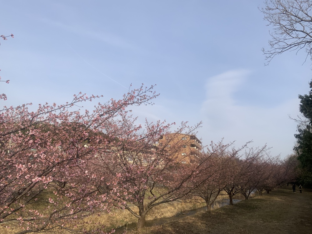 写真は、干し柿の納品の際に通りがかった「東大山河津桜まつり」の様子です。