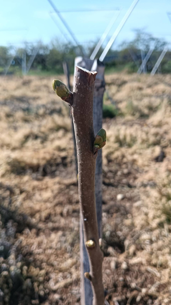 今年の3月に植えた太秋柿の木の芽が、少しずつ膨らんできました。