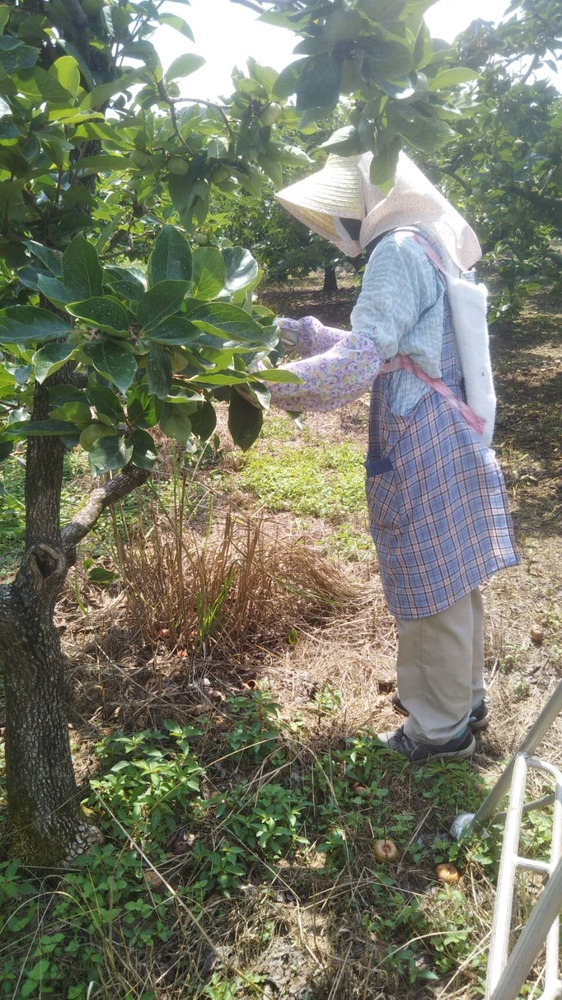 足立柿園 摘果の進捗