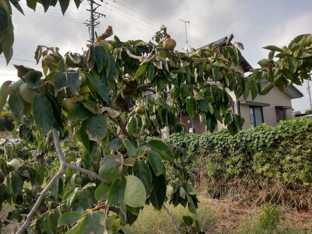連日の猛暑で一部の柿の木がしおれてきてしまっています。