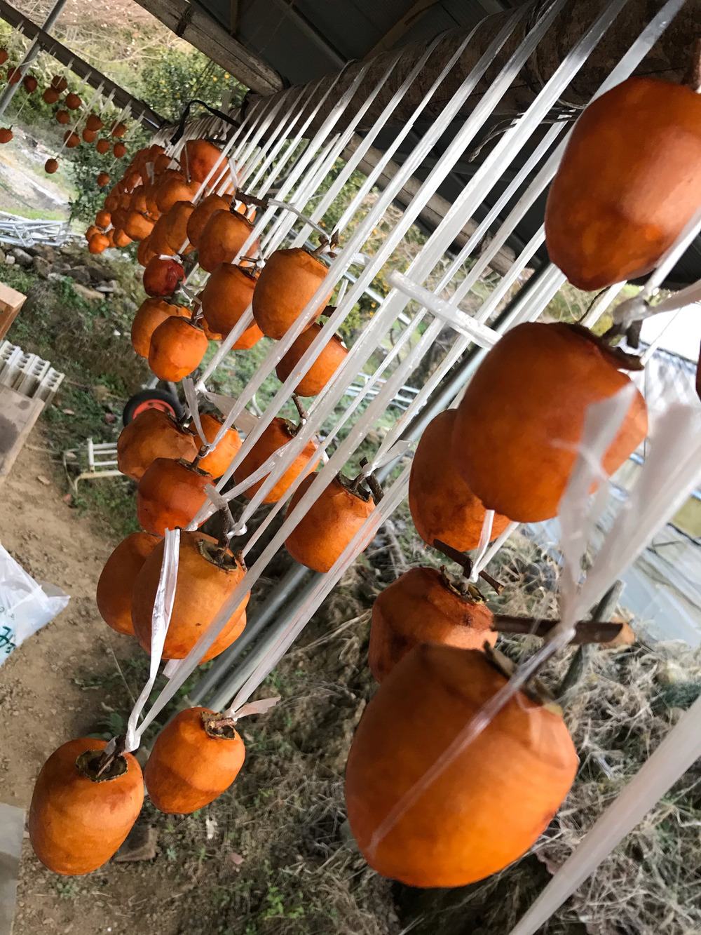 ときたま収穫し忘れの渋柿があり、今回はそれを吊るしました。
