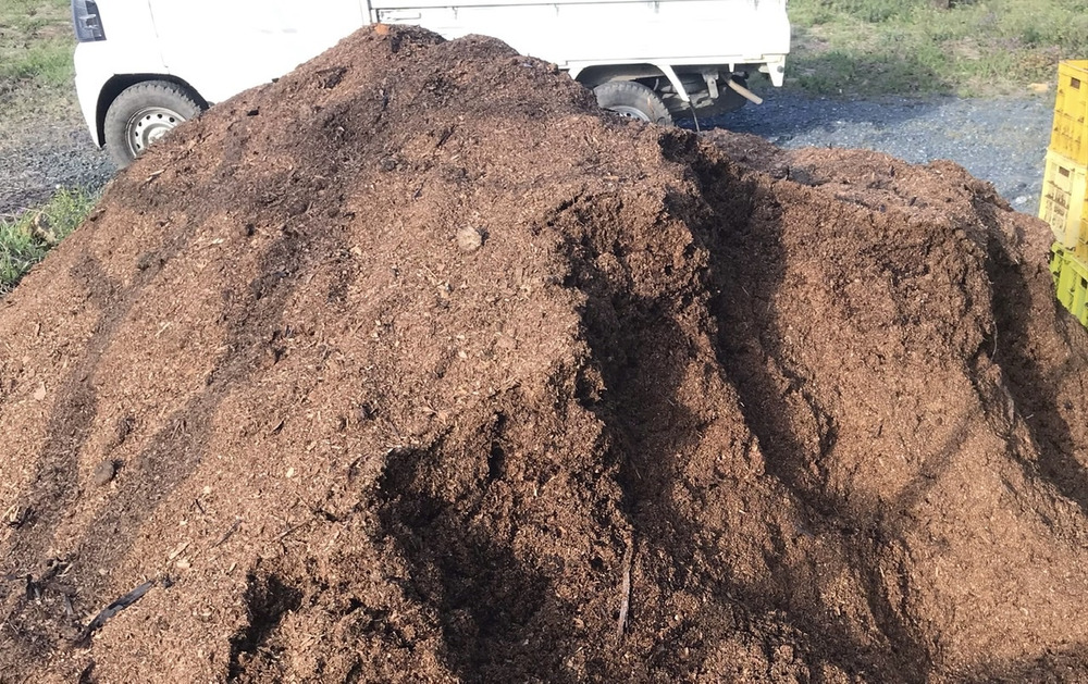 写真は馬糞堆肥です。完熟堆肥のためにおいはほとんどなくサラサラのフカフカです。