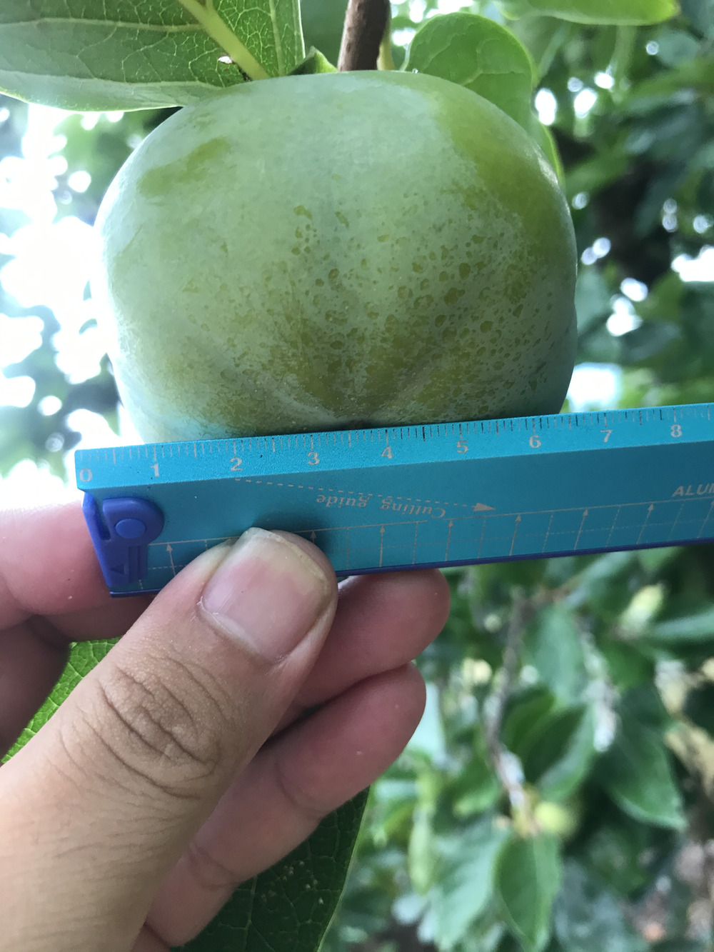次郎柿の大きさを測りました。大体直径が6センチくらいでしょうか。