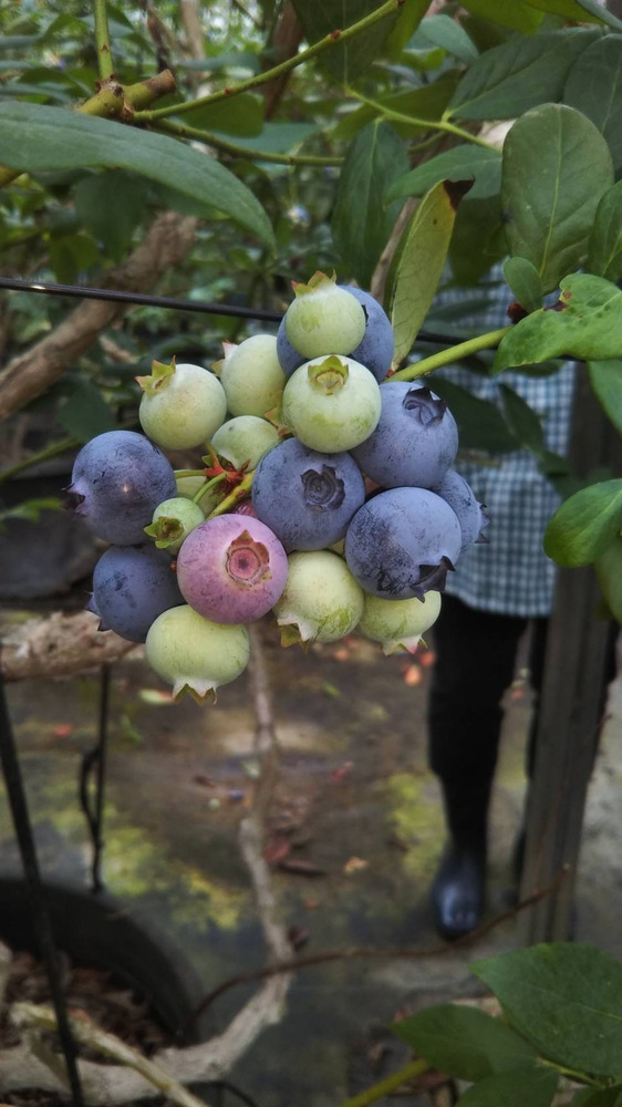 足立柿園では、次郎柿の他にブルーベリーの栽培もやっています。もうすぐブルーベリーの収穫も終了ですが、一粒一粒収穫なので大変ですが、みんなで一斉に取るので意外に楽しいです。ハウス栽培なので暑くて大変ですが、あと少しなので頑張ります。