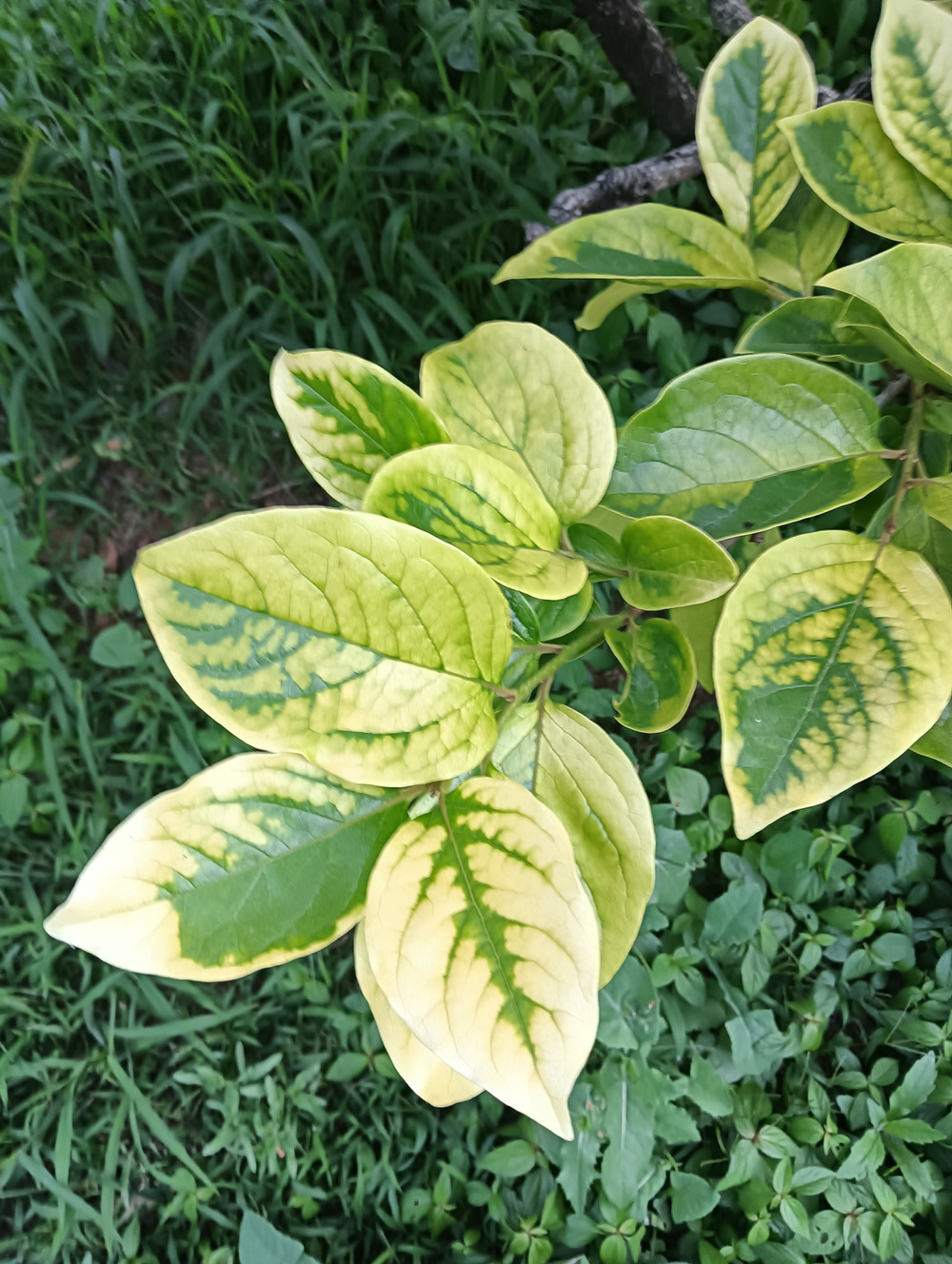 写真は近所の別の農家さんの柿園で発生している症状です。なにかの欠乏症だと思うのですが、今調べてみています。