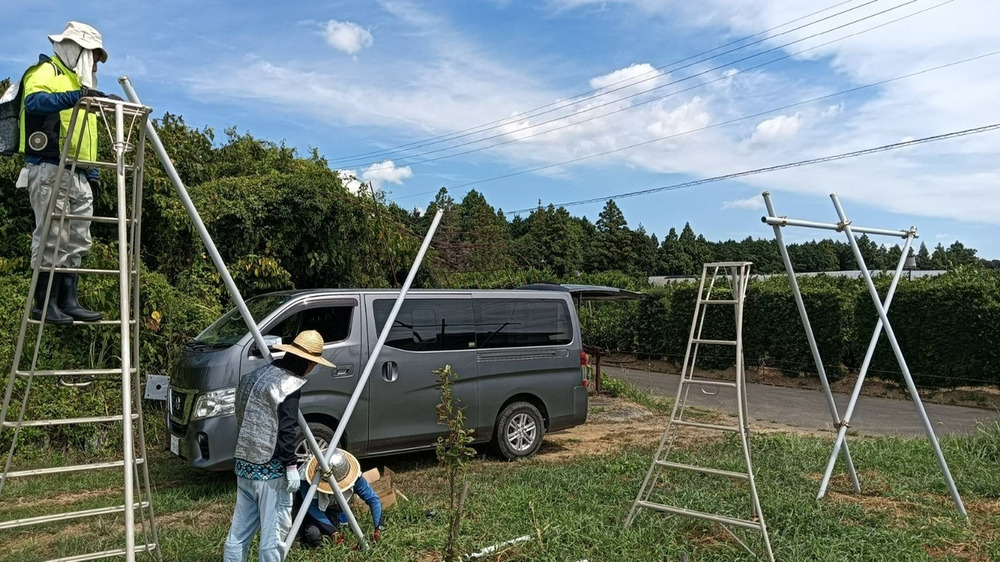 先日はスタッフのみんなと「果樹棚」を作りました。