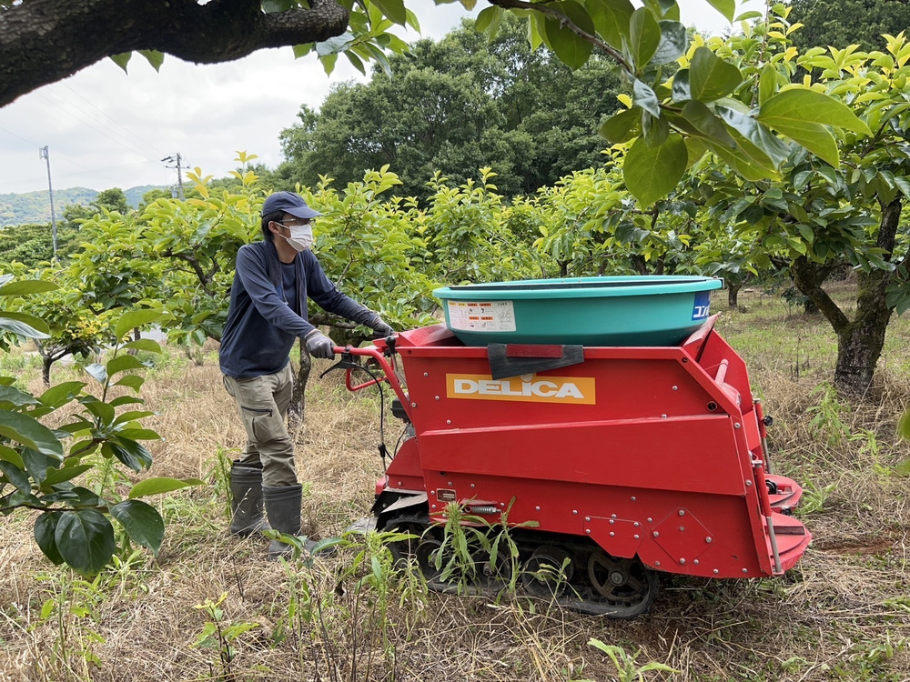 先日は次郎柿の畑に肥料をまきました。この肥料が効いてくるのは約半年後、収穫が終わったあたりに柿の木に効いてきます。収穫を終えて疲れてしまった柿の木の栄養になります。他にも10月ごろに肥料をまくのですが、それは4月の芽吹きのためのエネルギーになります。