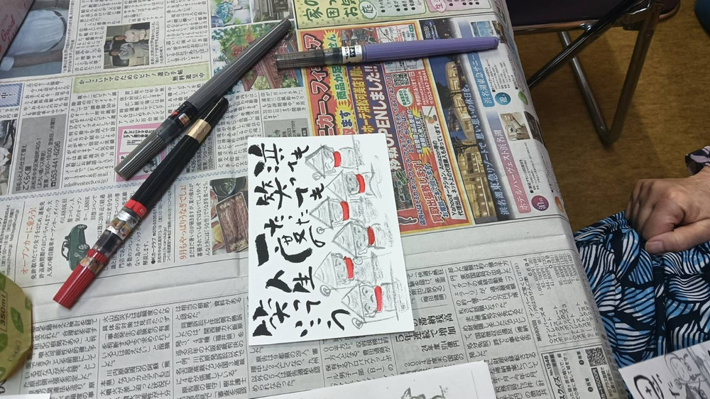 昨日は足立柿園の己書幸座を開催しました。今回の課題は、白と黒のコントラストが美しいお地蔵さん。