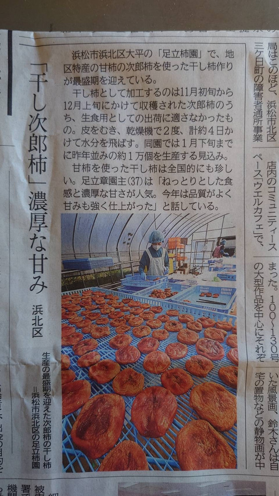 先日、当園の干し次郎柿を静岡新聞で取り上げていただきました。