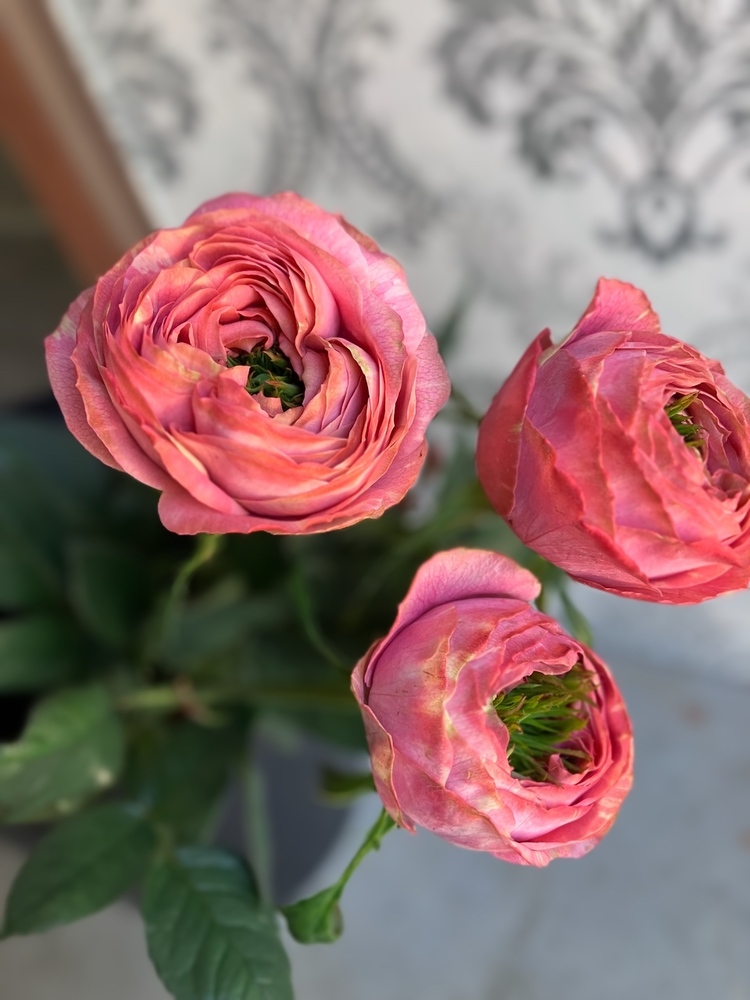 新しく植えた変わり咲きの【ピンクラナンキュラ】が咲き始めました。