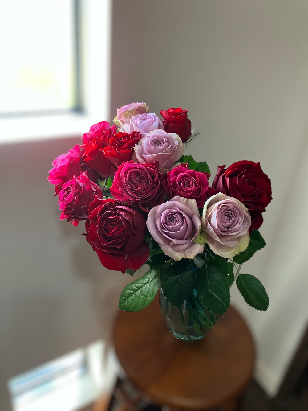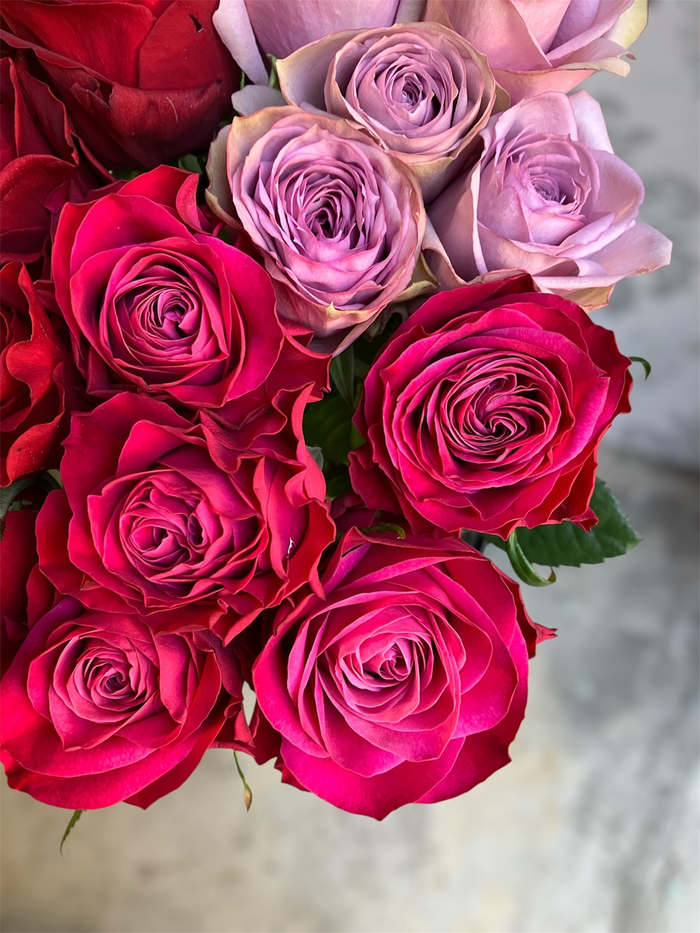 さて、新しい15本の組み合わせを2月限定で販売します🌹赤、パープルピンク、淡パープルのシックな3色でお作りします。