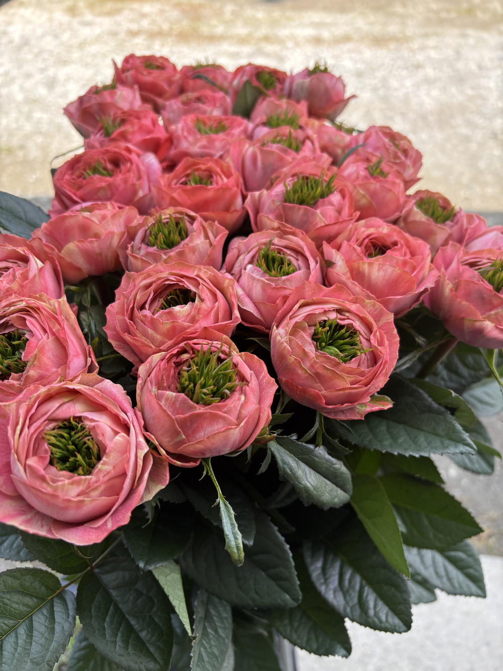 こちらは10年以上、毎年同じお客様が同じお客様へ送られているブロッサムピンクという品種の花束です。