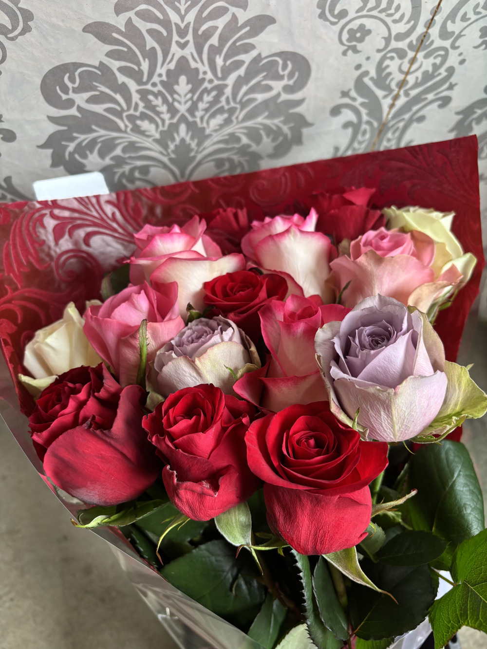 【15本】おまかせ厳選バラ☆贈り物にもおすすめ(ご自宅用簡易包装/50cm)