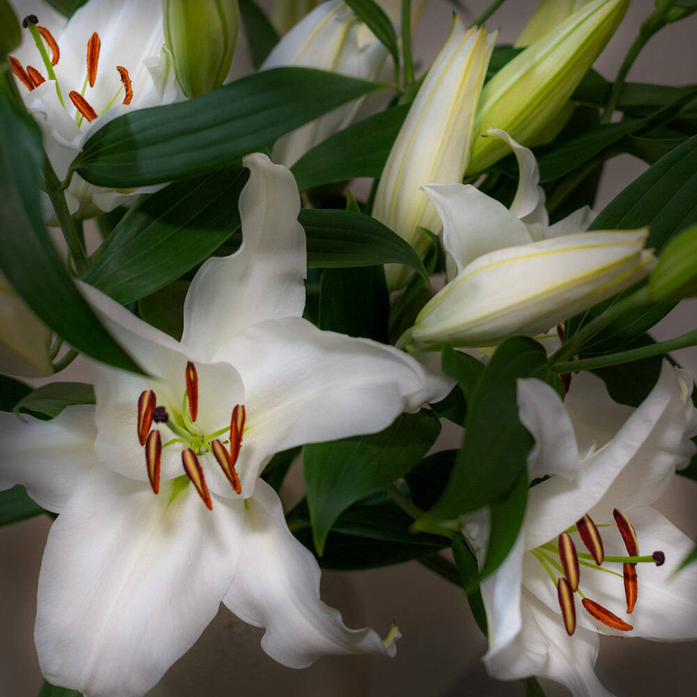 【年末向けご予約含みます】■白ユリ5本束■年間50品種の中からその時におススメの子をお届けします♥簡易包装 ※年末のご予約締め切りは12月22日午前9時まで!!