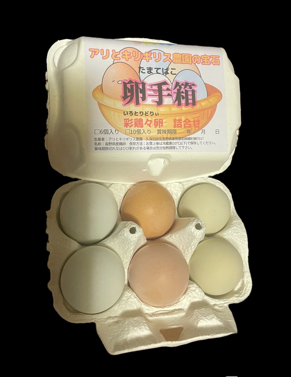 【卵手箱】については以前販売していた彩鶏々(いろとりどり)同様ではありますがアリとキリギリス農園で飼育している卵の詰め合わせです。