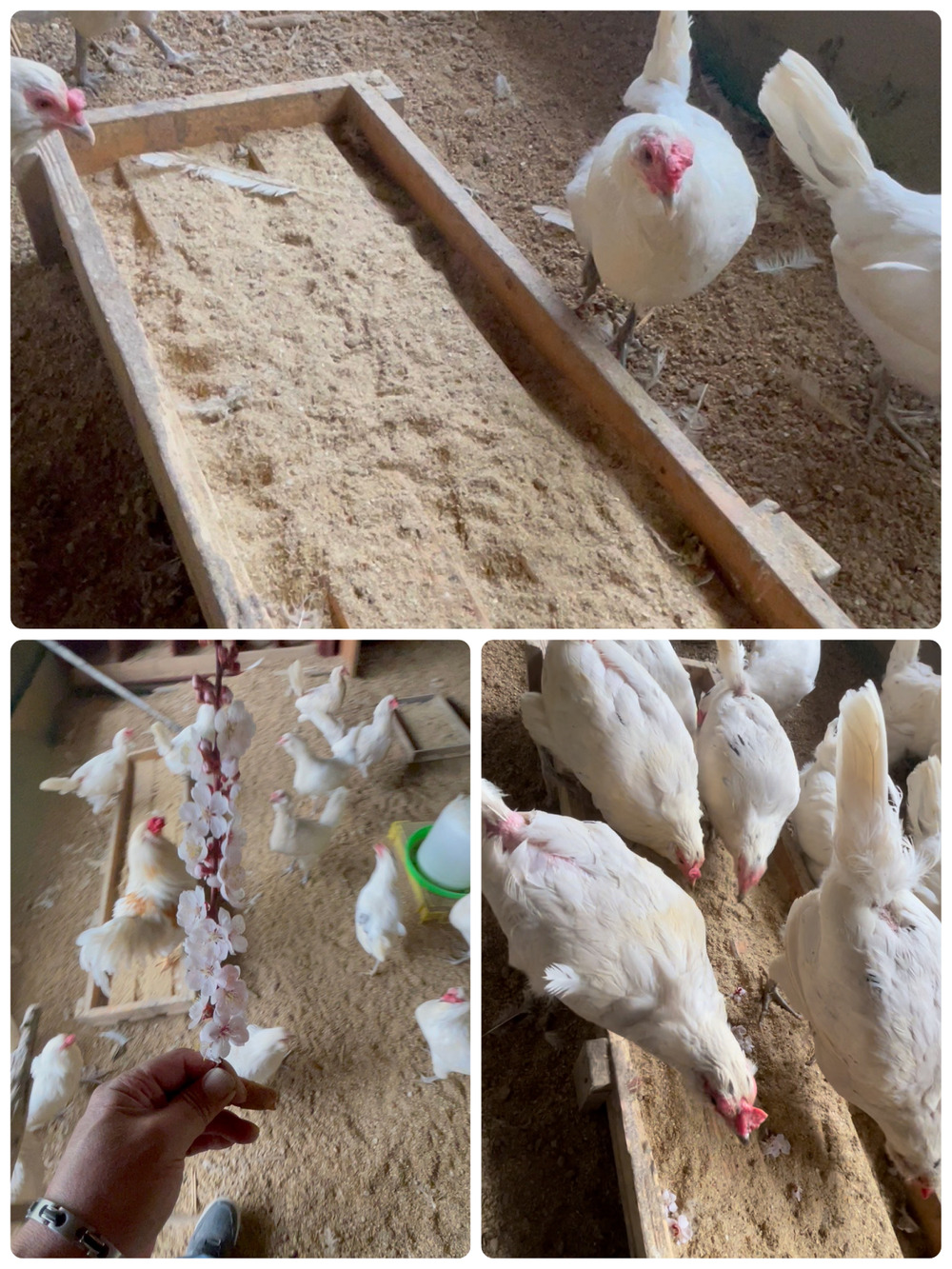 春になると桜や梅の花をアローカナにオヤツで与えています。