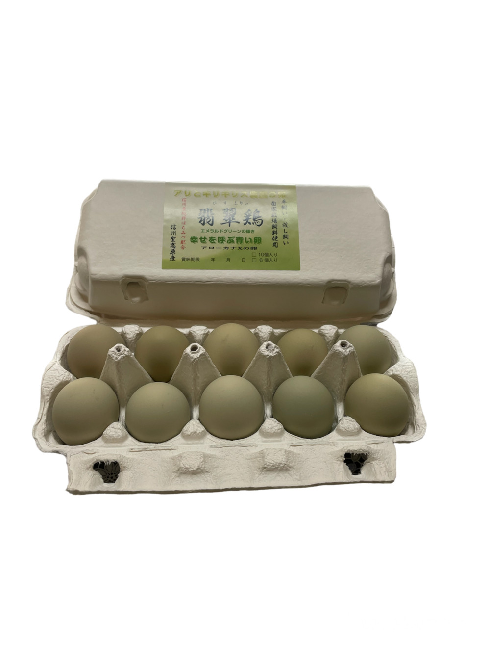 翡翠の色のように輝く卵でアリとキリギリス農園を創業してからの歴史(英文ヒストリー)的な卵になるよう名付けました。