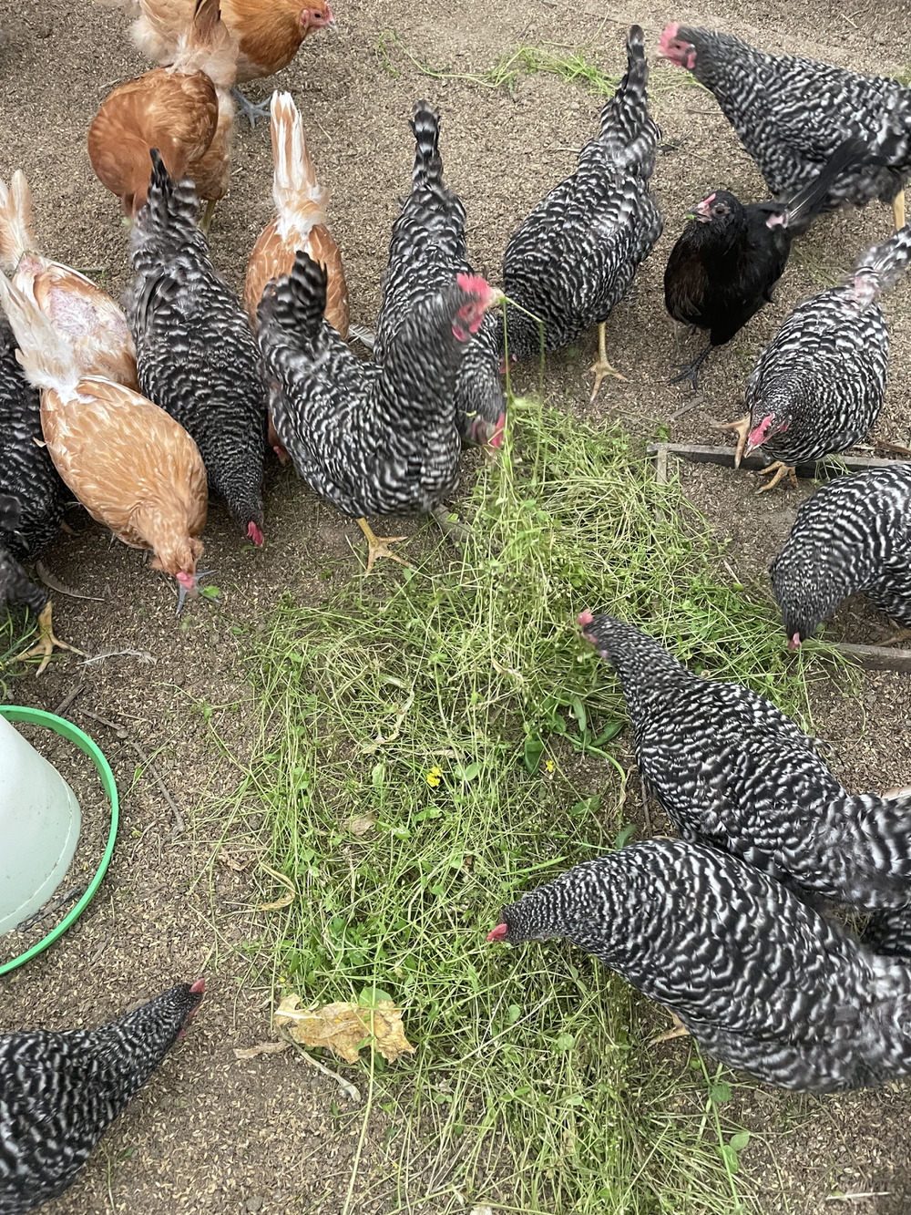 朝から野沢菜の菜の花の争奪戦が鶏達に勃発🐓