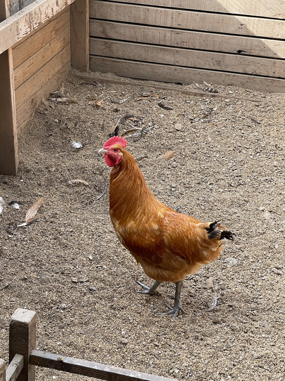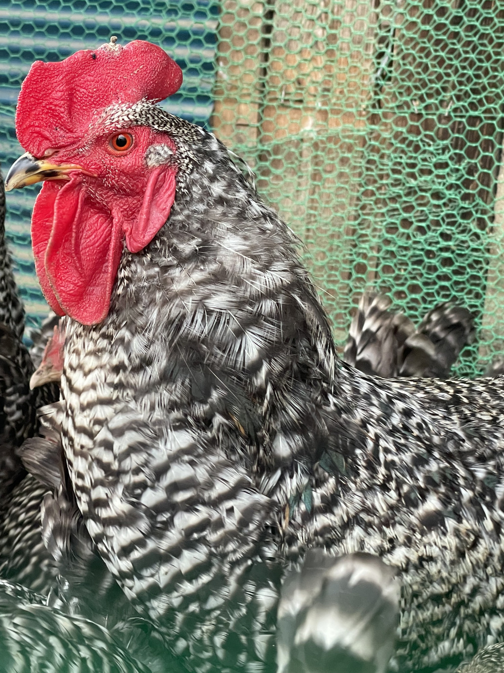 ハンサムだけど私には甘えん坊でメスの鶏達を守っています。私以外の人が鶏舎に入ると猛攻撃されます。