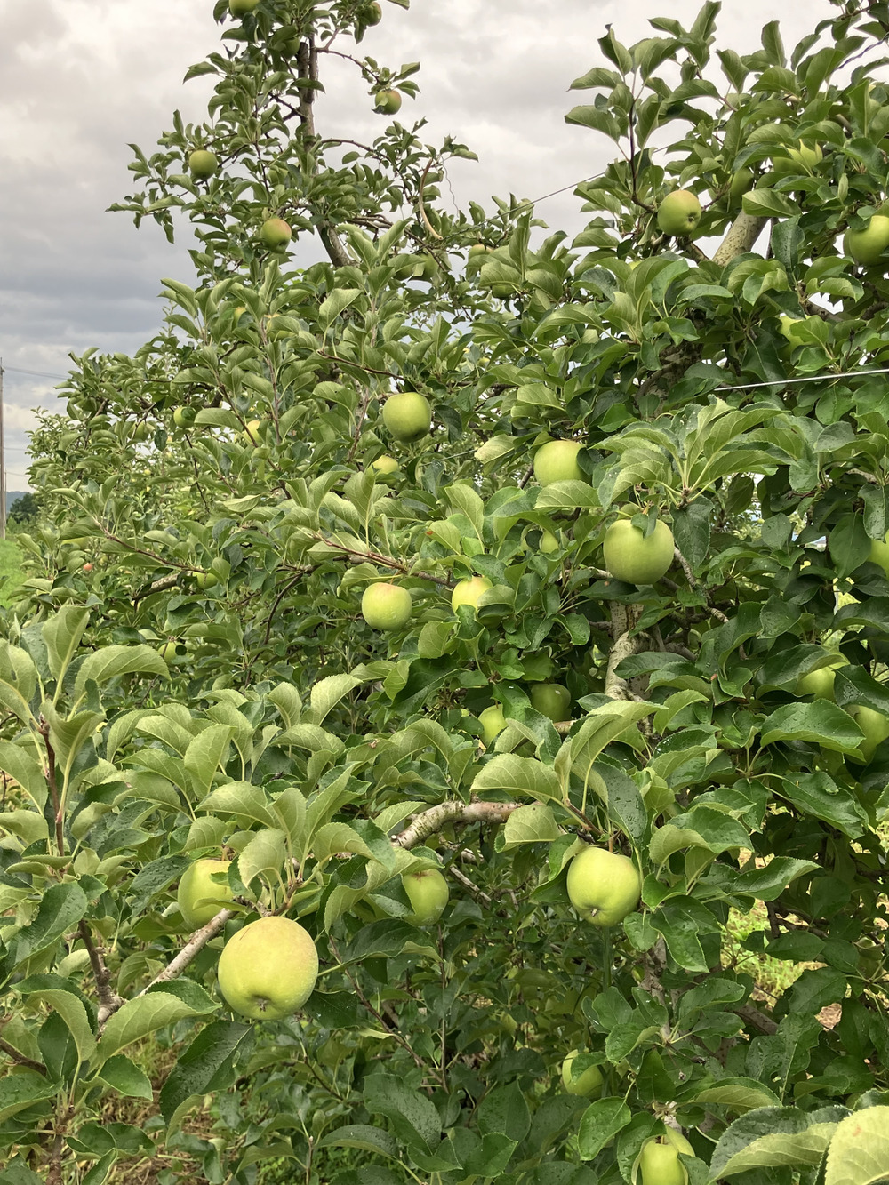 りんごはまだ青いですが、これから少しずつ赤く色づいていきます。