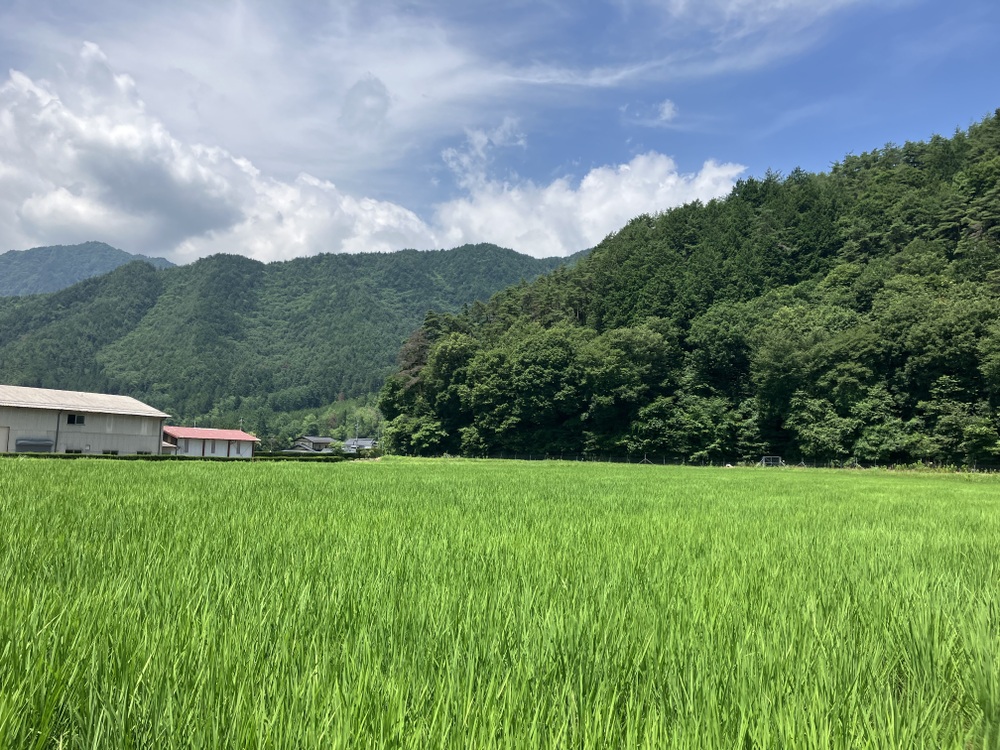 夏の空の下、りんご畑や田んぼが広がる景色は、まさに絵になる季節です🎐