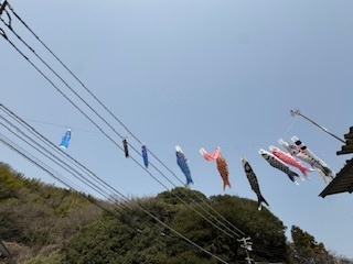 今日は、天気もよく風もあるので、鯉のぼりがよく泳いでいます。