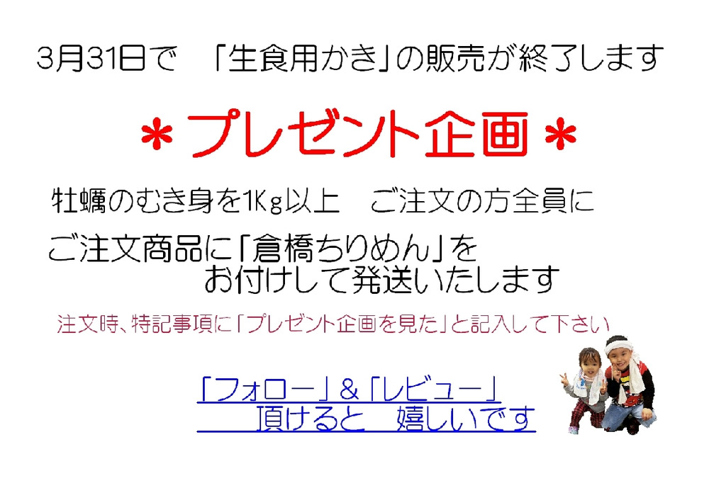 「牡蠣のむき身」を1Kg以上ご注文の方全員に
