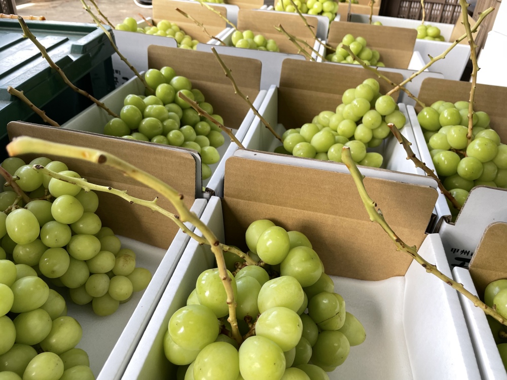 我が家では最後の品種、シャインマスカットの収穫、そして配送に追われています。