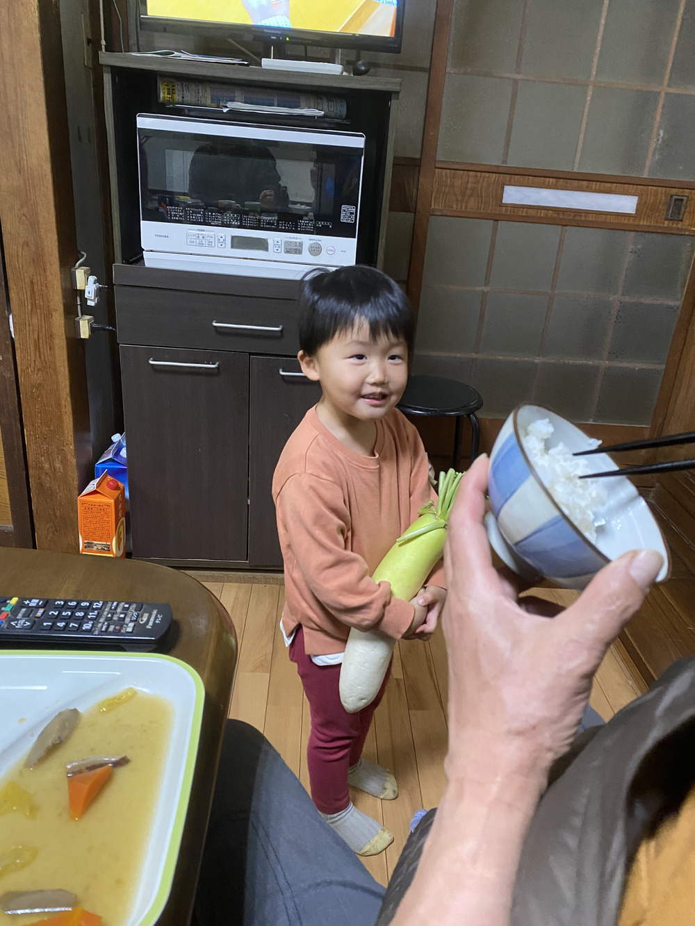 写真は最近やっと「だーこん(大根)」と言えるようになった我が子です。