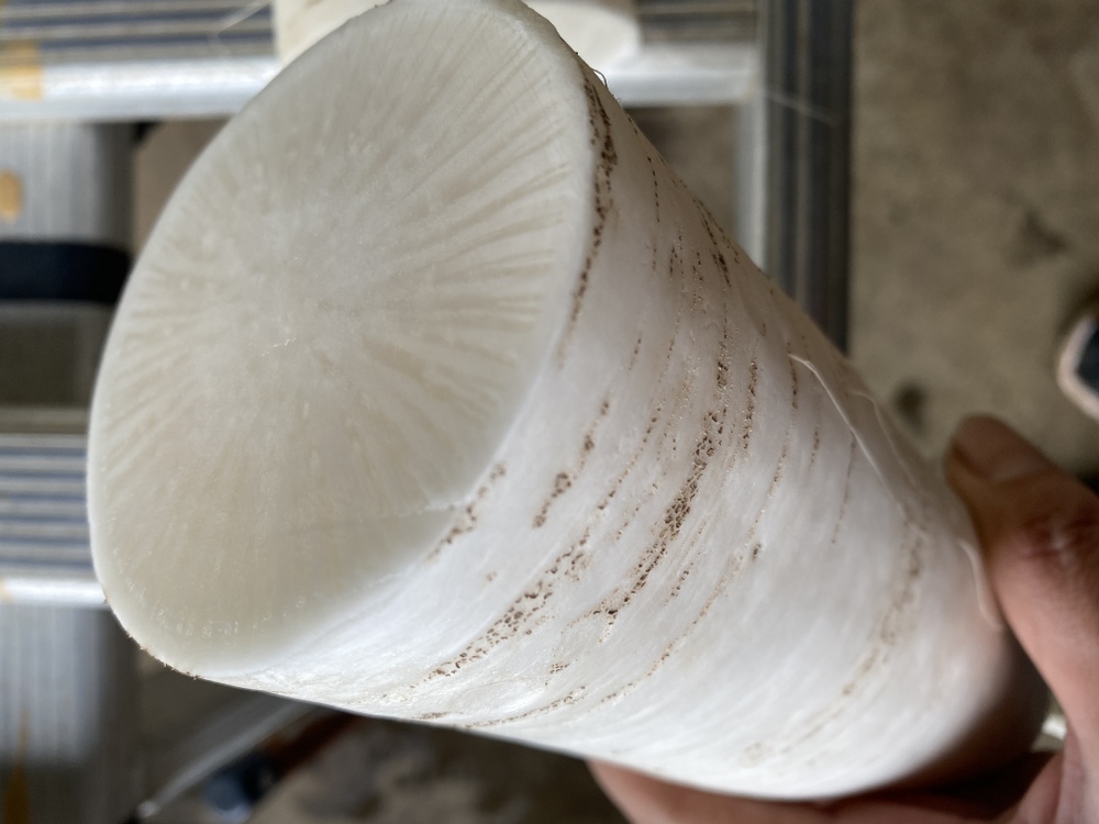 我が地域ではだいたい20年?間隔で現れる症状らしく、乾燥が原因で、対策の仕様がなく、規格外で出荷も出来ずお手上げです。残念!
