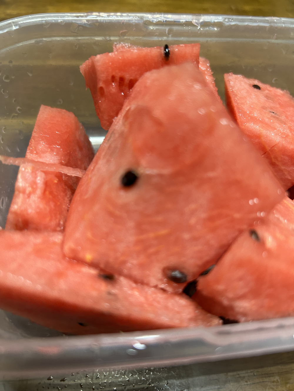 写真の赤色スイカは、6月30日収穫のピノガールで、台所で保管していた物になります。