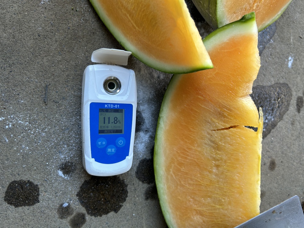 今年は期待していましたが、皮際糖度11.8、中心糖度が13.3度という結果でした!