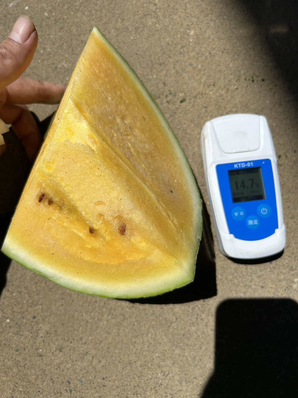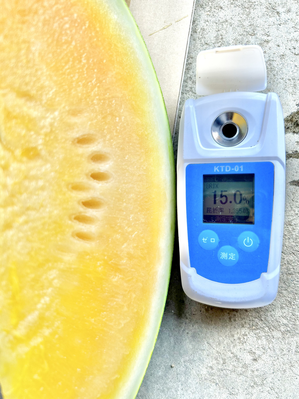 赤色スイカは糖度12度から13.8度の間という感じです。