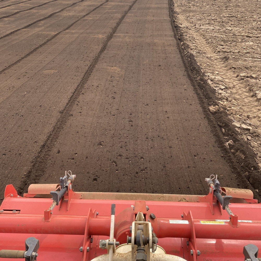 肥料、フロンサイドが終わり、トラクタで土を柔らかくたがやし、今日は終了!