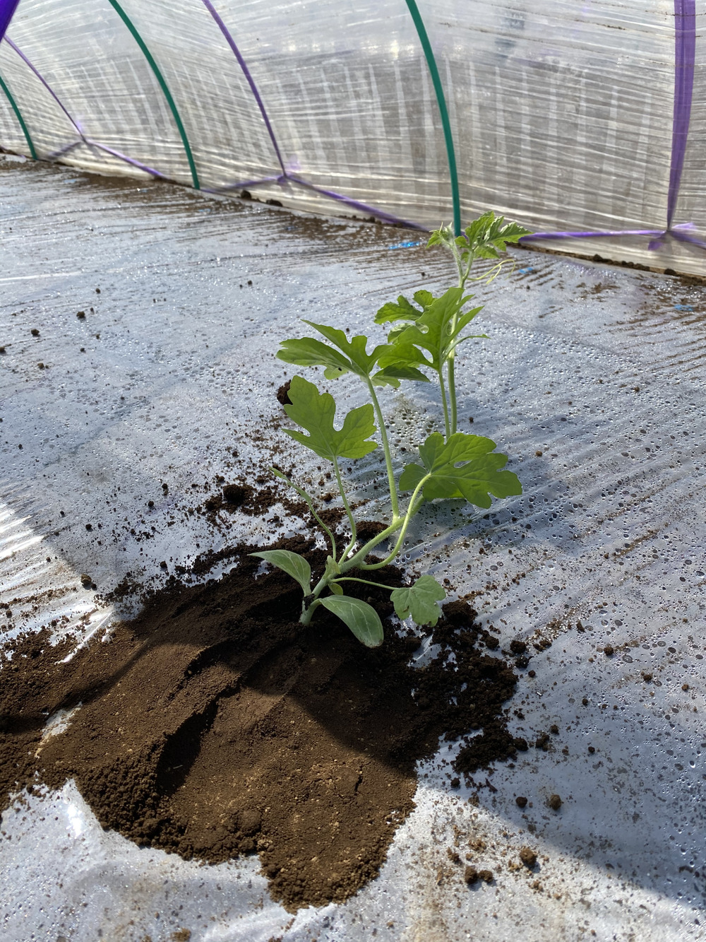 2枚目夕方から寒くなってきたので、ビニールトンネルを閉めにきた時。