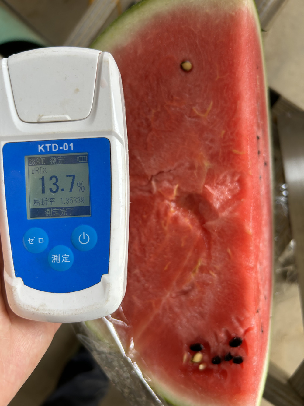 1番最初に収穫する畑は、もう少し収穫するまで日にちが欲しかったと感じています。それでも今年は天候にも恵まれ、数日前の糖度検査で13度ありましたので、甘さは例年以上かと思います!