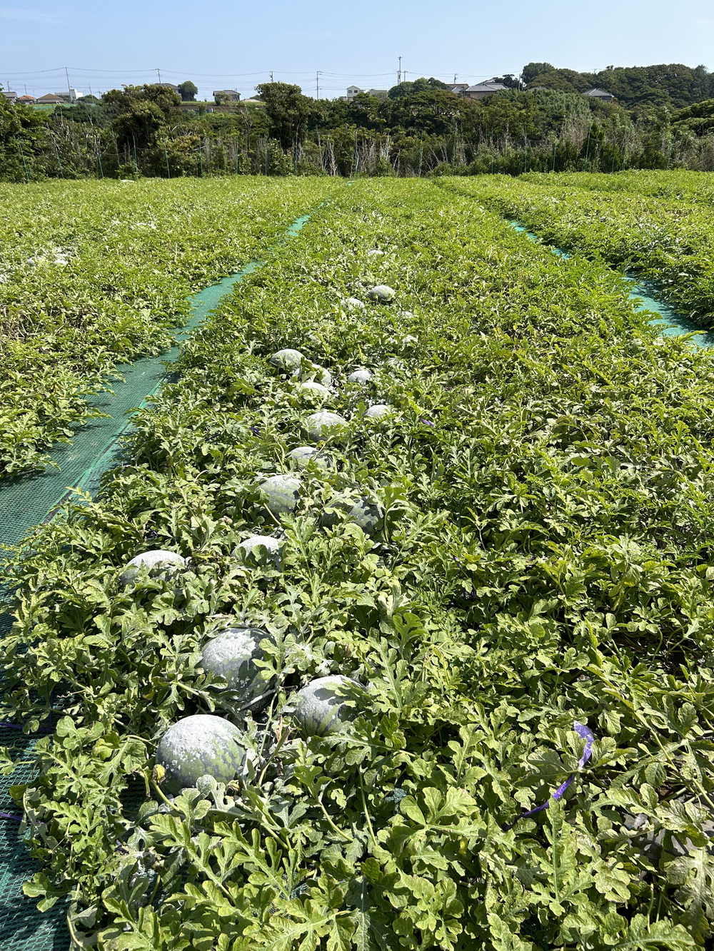 本日は小玉スイカの糖度チェック、金色羅皇の糖度チェック、金色羅皇の収穫そして畑の見回り。
