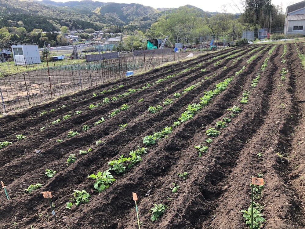 3月5日に植え付けた、じゃがいも達が芽を出してきましたので、4月16日に、米糠発酵ぼかしを与えながら土寄せを行いました。これから、すくすく成長して美味しい🥔が6月に収穫できるよう、大切に育てていきたいと思います❣️