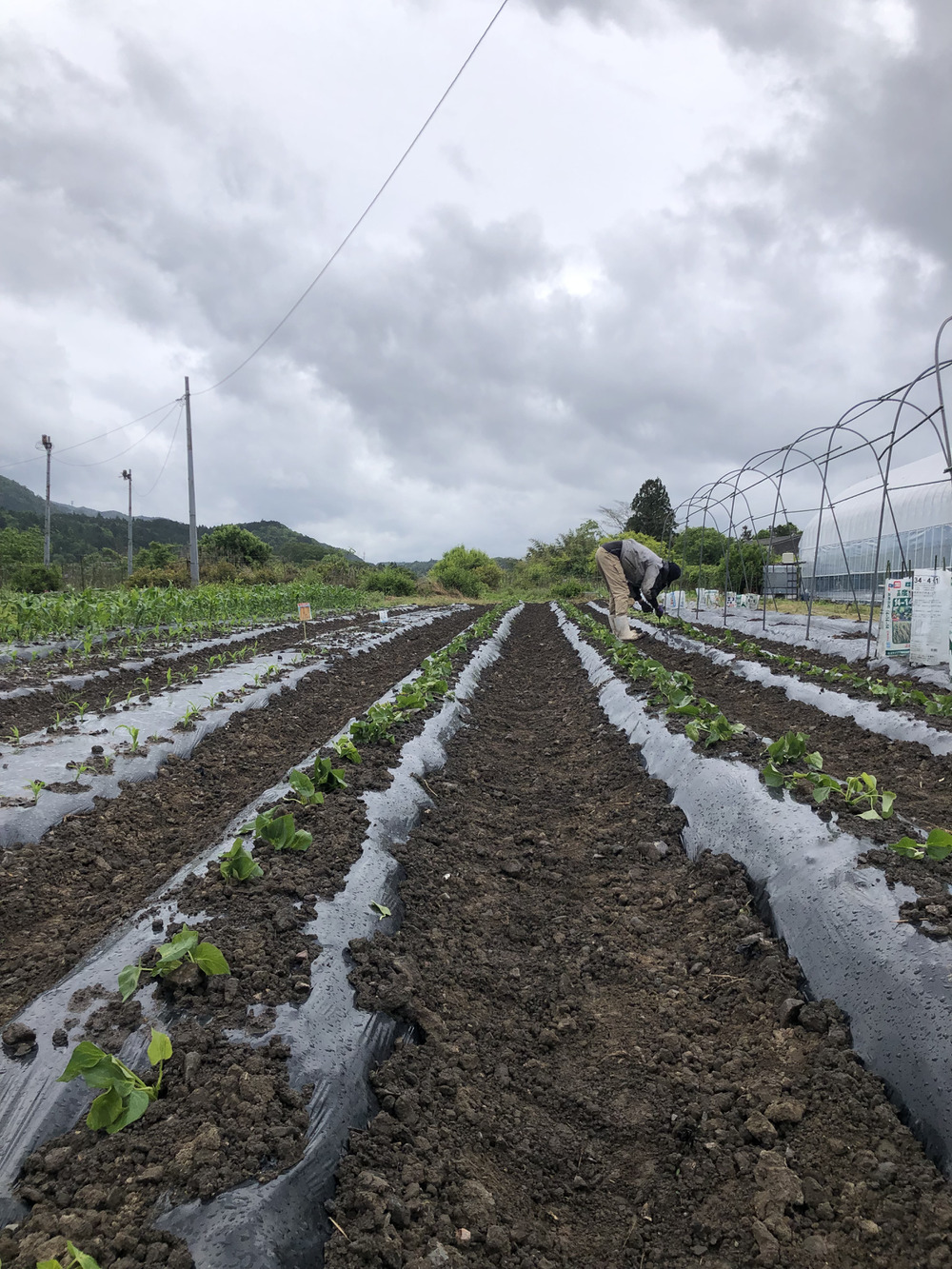 GWに畝立てとマルチングを済ませていたところ、昨日、苗が入荷したので、小雨の降るなか、シルクスイート500本、鳴門金時50本を植えつけました!収穫まで約4ヶ月と長丁場ですが、美味しく育ってくれることを願っています😊