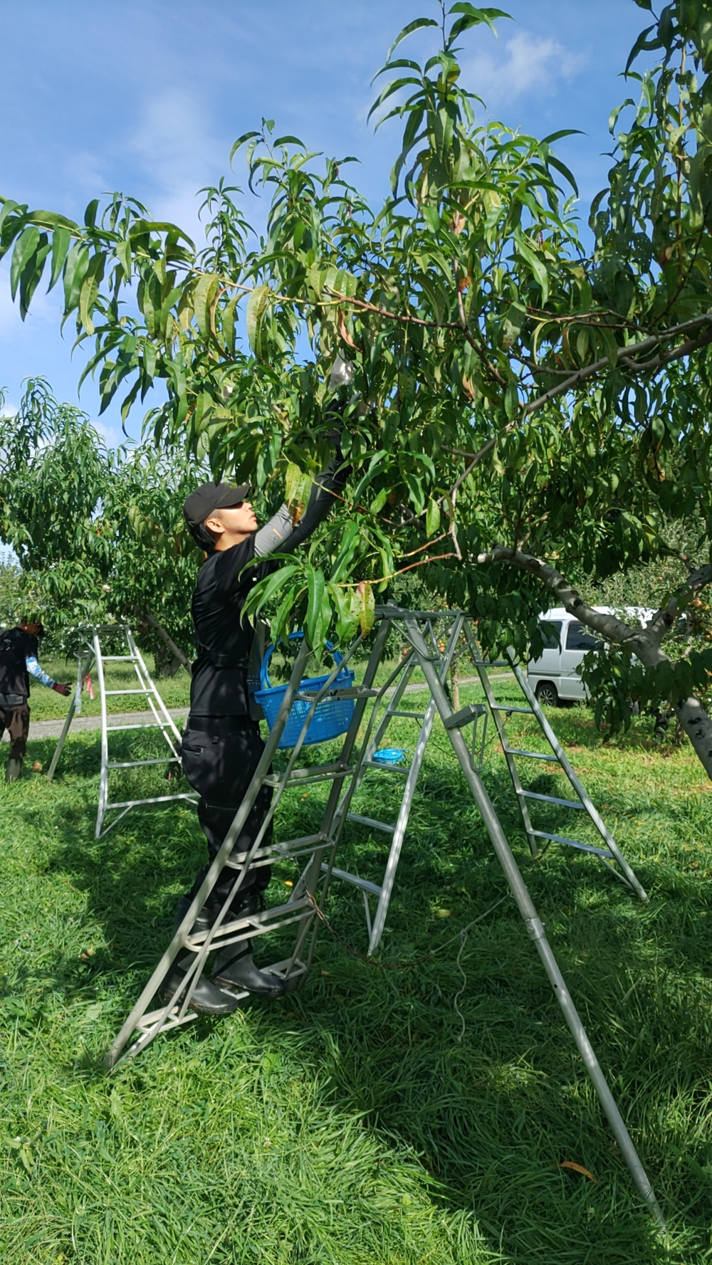 今日のとんがり▲まさひろ林檎園は、桃の収穫です。