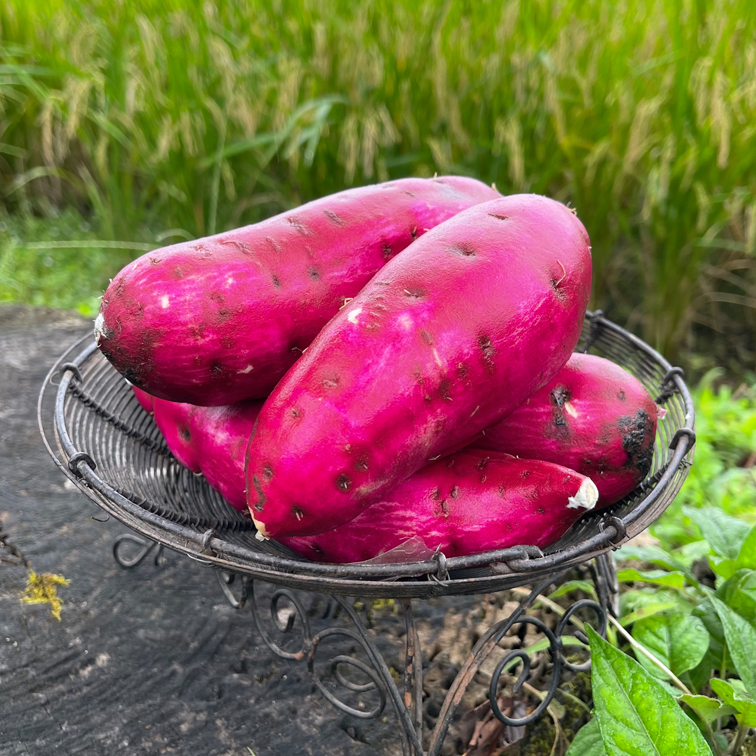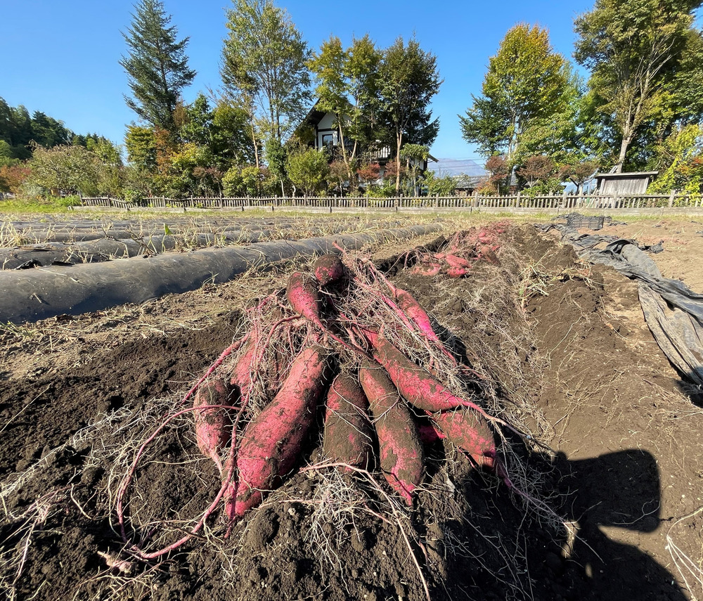 紅はるかは収穫から1か月は皮が傷つきやすいので洗浄はせず、「新芋」として土付きで販売させていただきます。