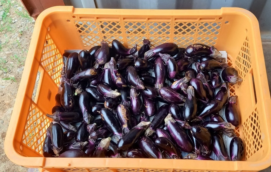 今朝も、なすを収穫しました。昨日は、ブロッコリー畑の近くに、「にんじん」と、「春菊(前回種を採取したもの)」の種を蒔きました。だた、にんじん予定地、けっこう余ってしまったので、後日、「にんじん」の種を追加で蒔こうと思います。