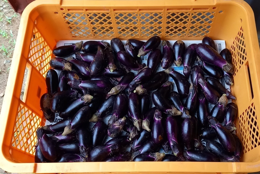 今朝5時台のなす畑の様子です。雨は降っていなくて、ホッとしました。ただ、畝の間に水たまりの跡が残っています。