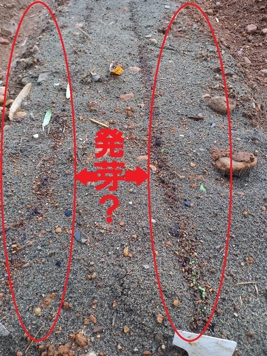 今日も、なすを収穫しました。今朝5時台の写真です。雨は、降っていなくて良かったです。あと、春菊の種を蒔いた箇所に、春菊の芽の様なものが、発芽していました。私は、そこまで、詳しくないので、分かりませんが、これが、果たして、春菊なのか否か要観察です。