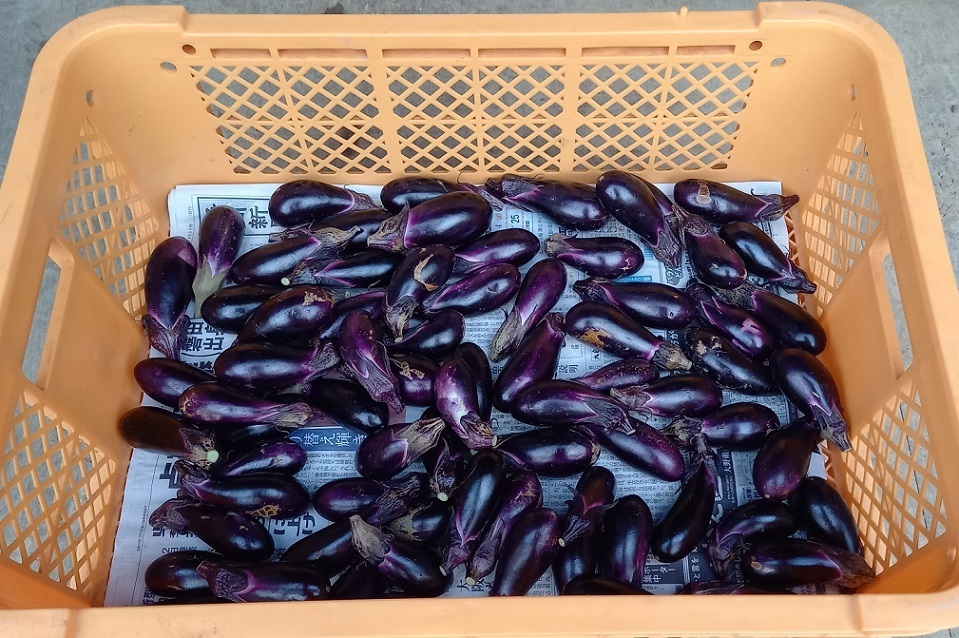 2021年9月5日 今日も、なすの収穫をしました。あと、春菊発芽?
