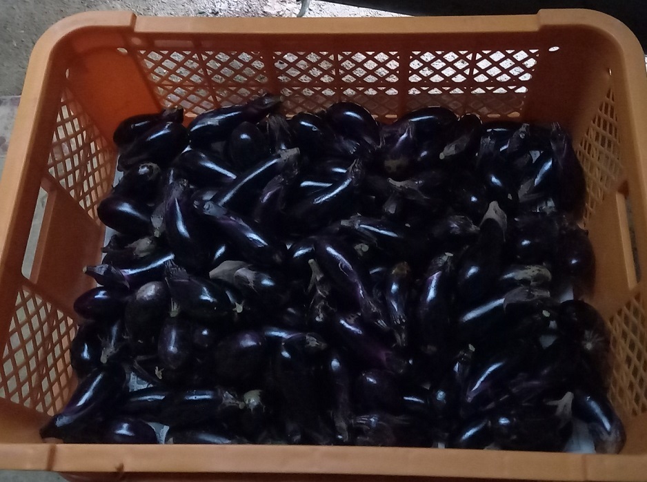今朝は、雨が降っていましたが、そのような中、なすを収穫しました。