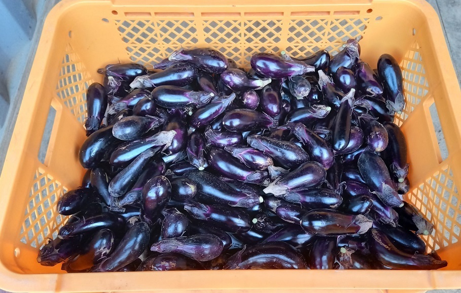 今朝も、なすを収穫しました。誰か、買って頂けるといいのですが。あと、試験的に栽培中の「にんじん」発芽のようなものがありました。これが、本当に、「にんじん」なのかこれからも、要観察です。