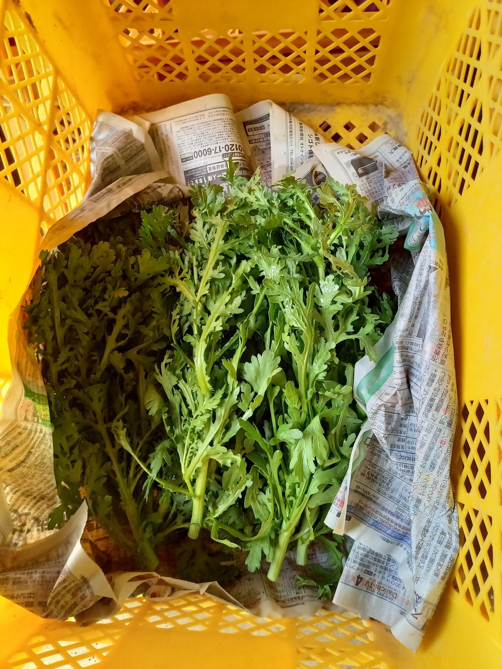 今日、ご注文を頂いた春菊を摘み取り、宅急便で出荷しました。無事に届くといいのですが。