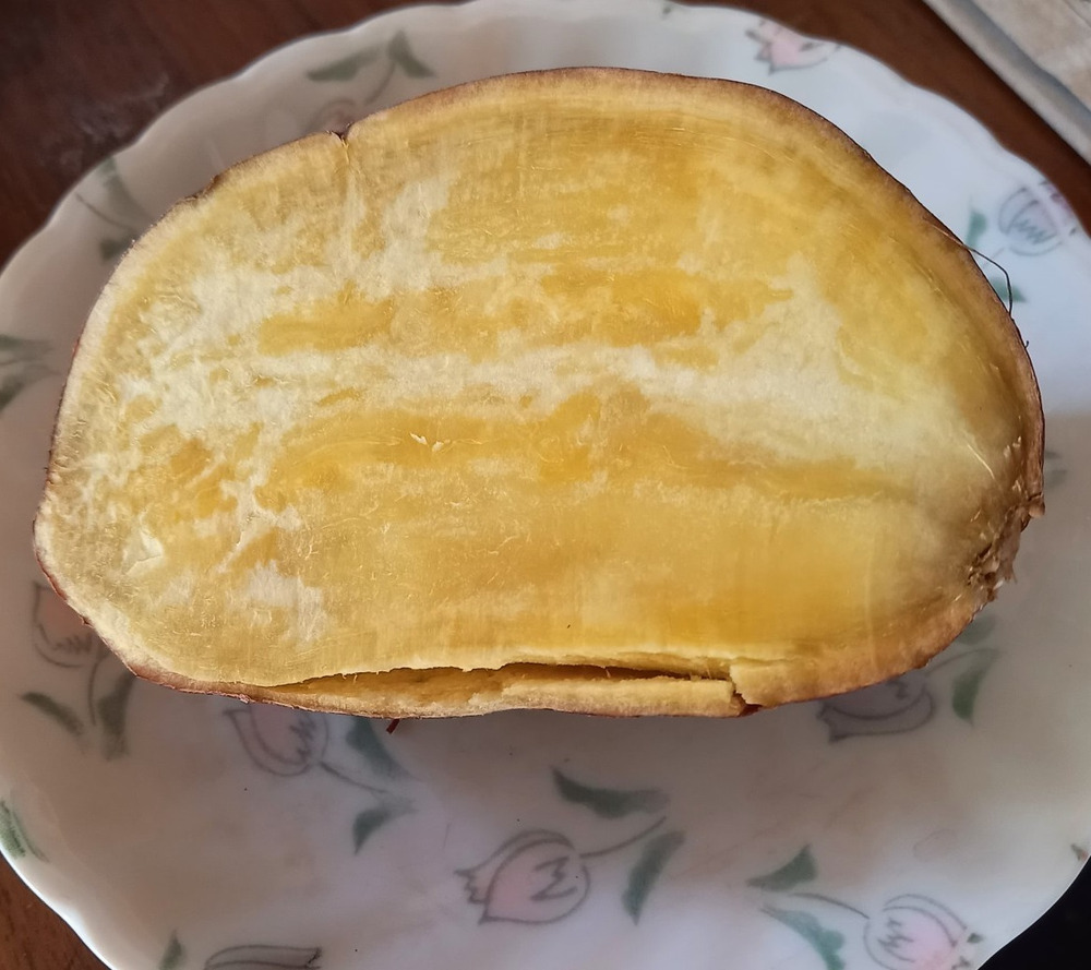 さつまいも(シルクスイート)ですが、太いものは、半分に切って、電子レンジで約6分(650W)下に水を少し入れ、サランラップをかけて蒸して食べました。甘くて美味しかったです。(私は料理が苦手なので、電子レンジを使用します。)いろいろ調理方法あるかと思いますが、是非、ご検討下さい。