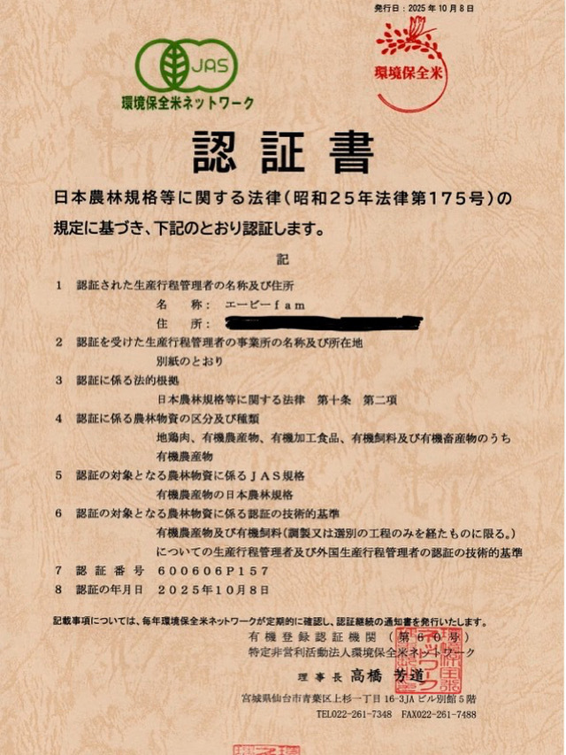 【令和7年新米】有機ササシグレ 玄米10kg【有機JAS転換中】